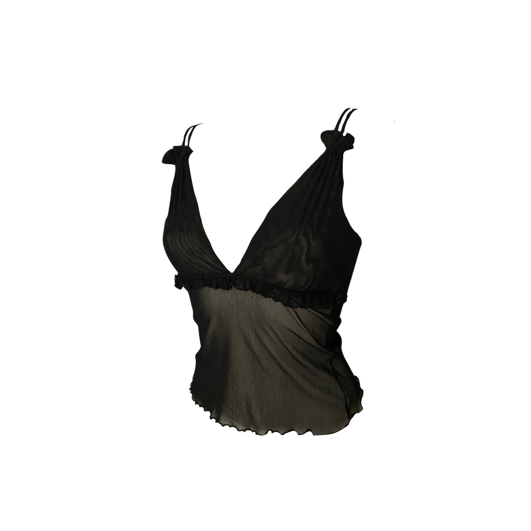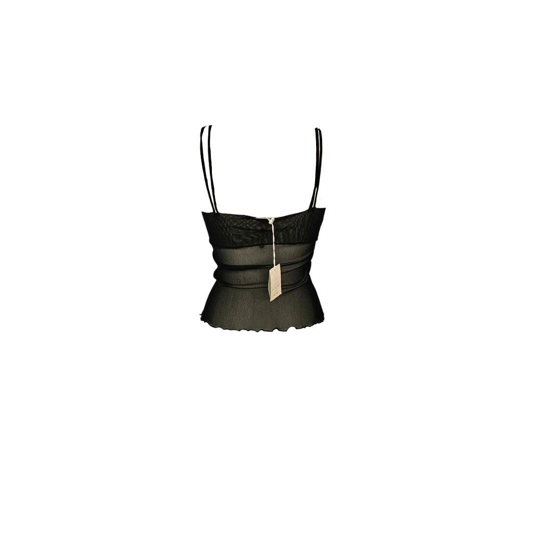 Τοπ τούλινο με διπλό τιραντακι ντουμπλαρισμένο στο στήθος .Ένα μοναδικό vintage top με αναλαφρη υφη και αψογη εφαρμογη.